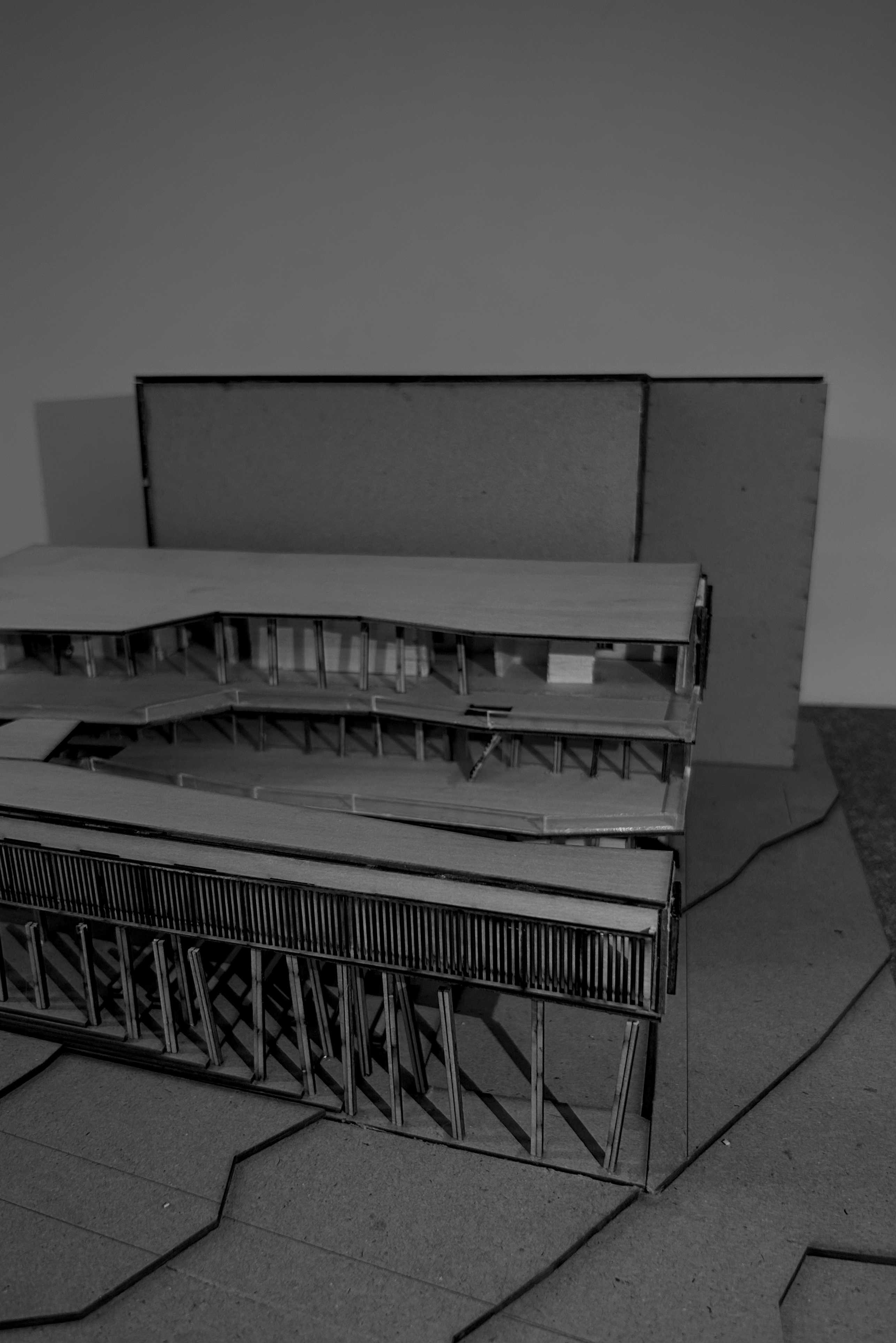 A passage carved by water, terraces descending, columns rising, and the horizon held gently between them.